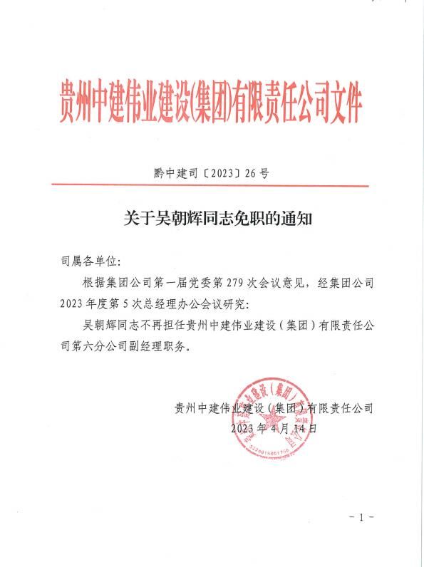 關(guān)于吳朝輝同志免職的通知