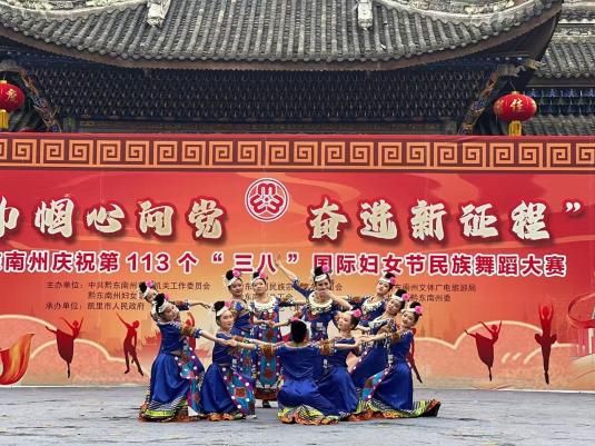 3月6日,黔東南州婦聯(lián)聯(lián)合州直機(jī)關(guān)工委、州民宗委、州文體廣電旅游局、州總工會、團(tuán)州委共同舉辦的“巾幗心向黨 奮進(jìn)新征程 鑄牢中華民族共同體意識”民族舞蹈大賽在凱里市下司鎮(zhèn)舉行,集團(tuán)工會積極組建舞蹈隊(duì)參加比賽,榮獲最佳風(fēng)采獎。
